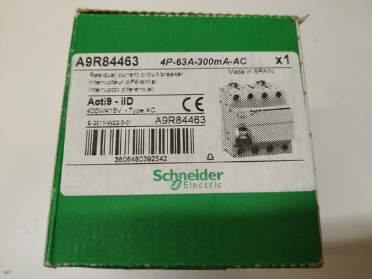 DIFERENCIAL 63A/300MA/0.3A/4P 10ka A9R84463 SCHNEIDER NUEVO