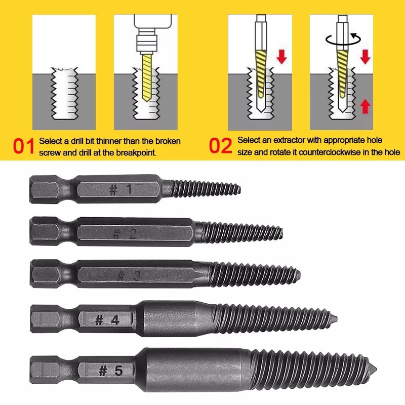 - Juego 5 extractores de tornillos.