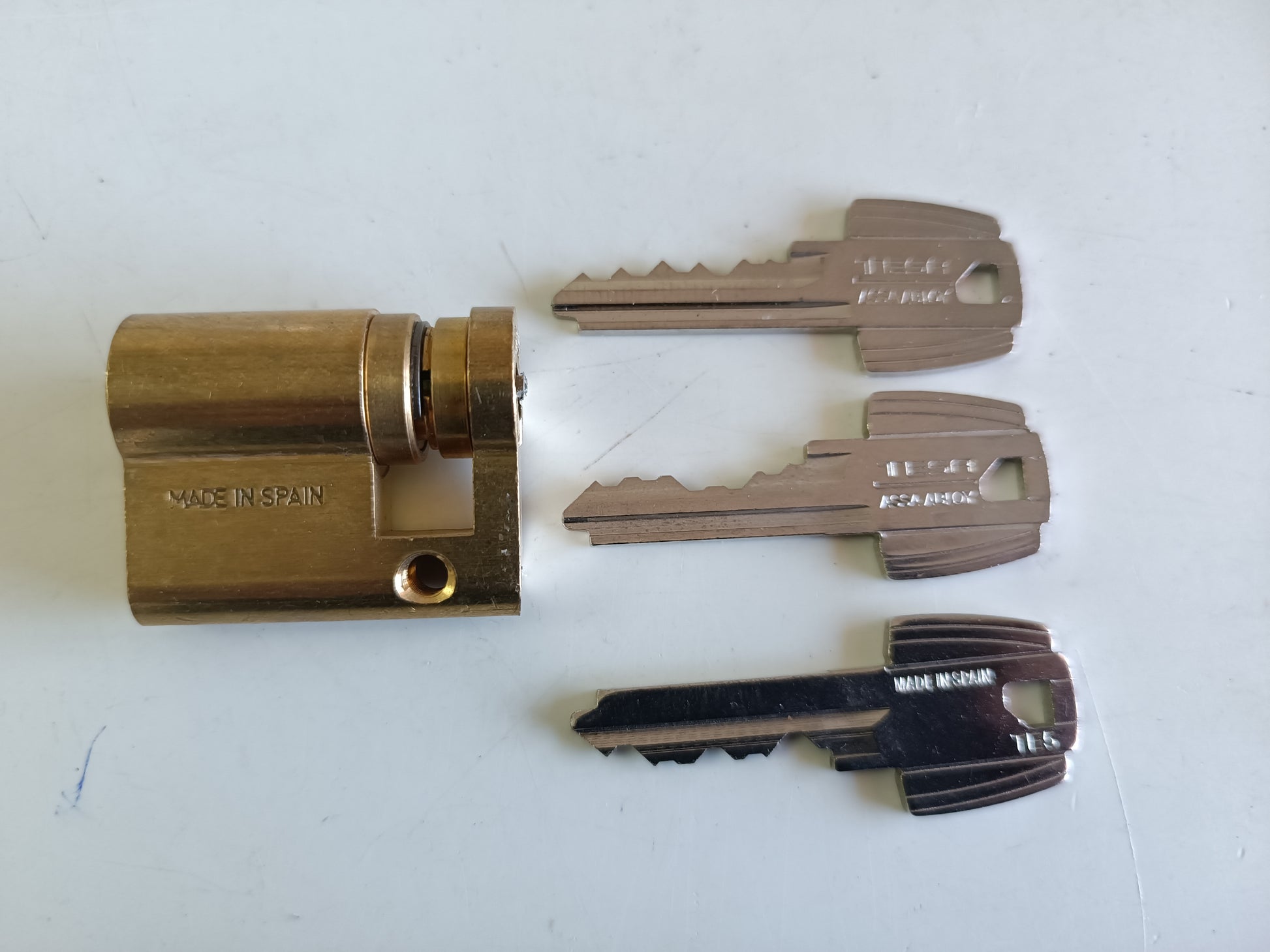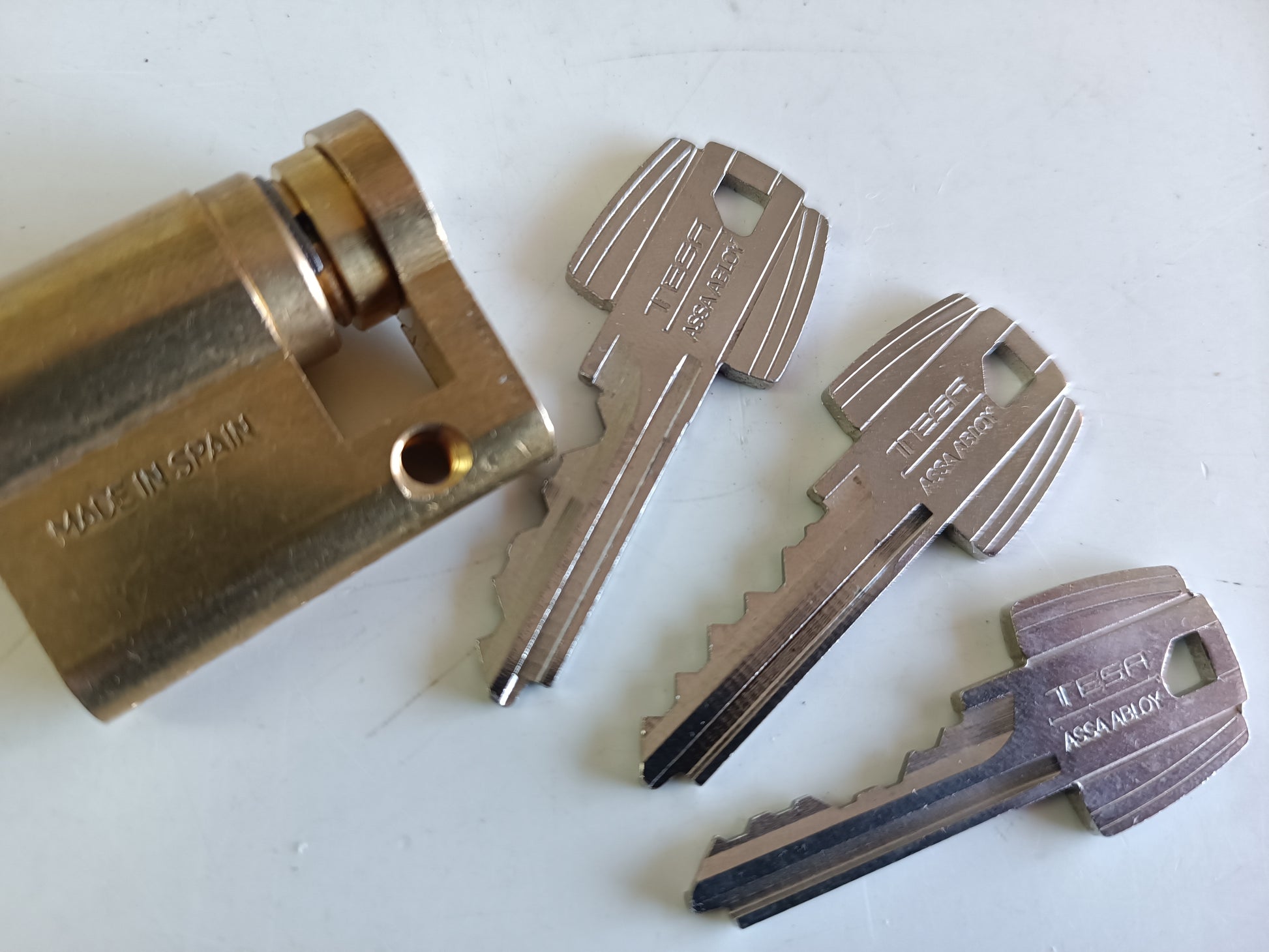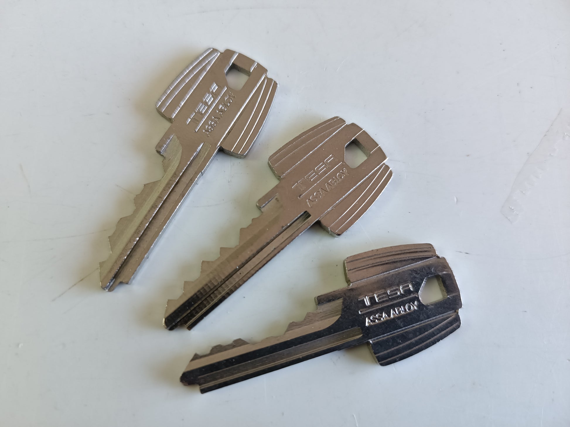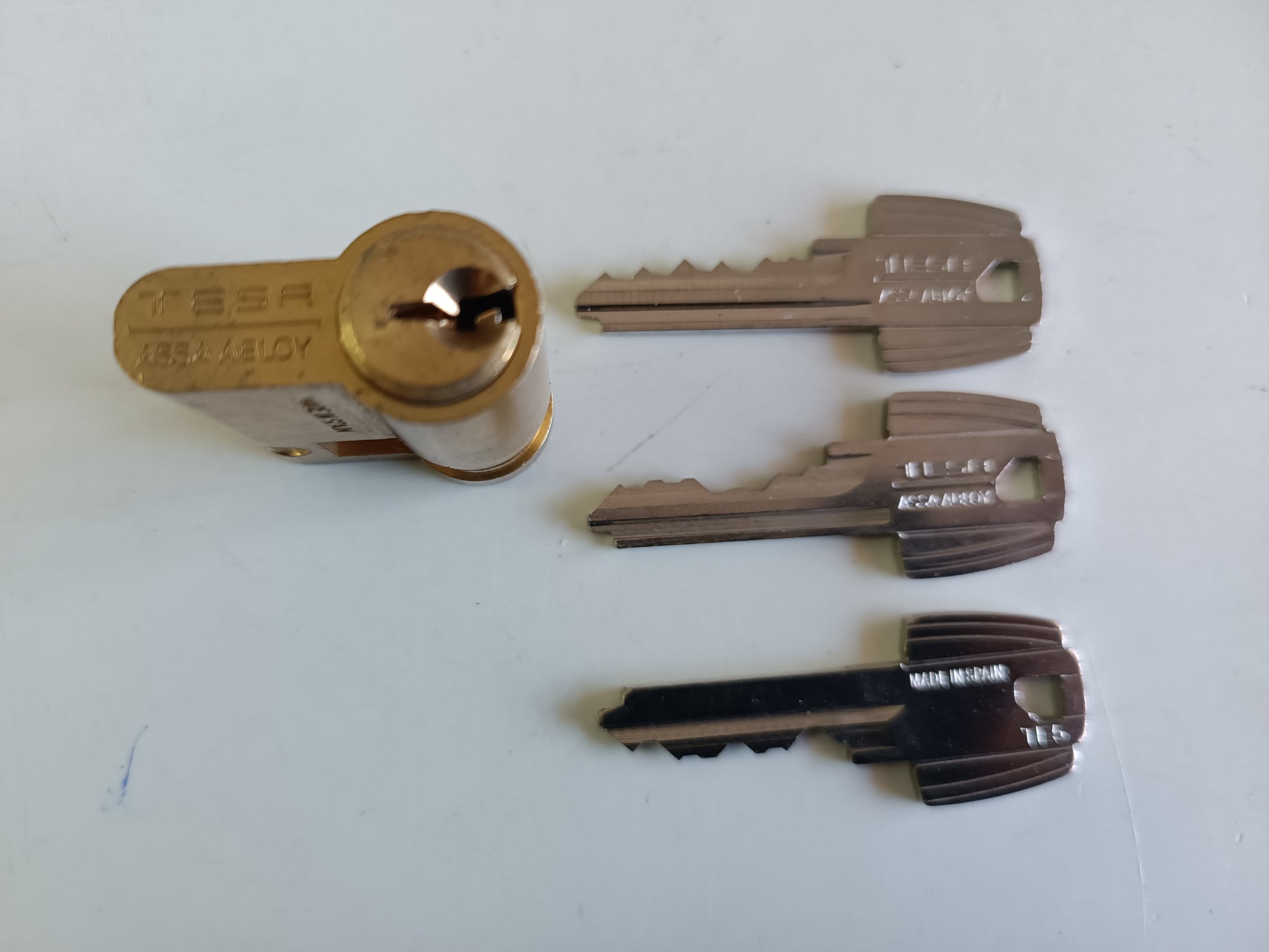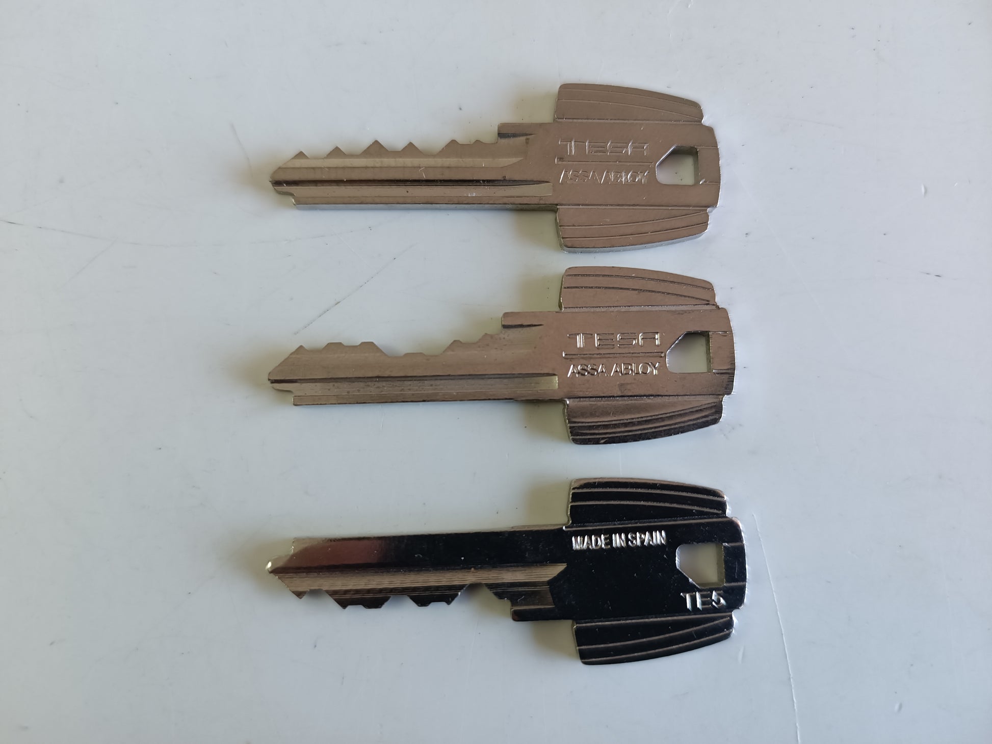 Juego de 3 llaves maestra para bumping serrata. Bump-key para cerraduras marca fabricante Español TESA. Tipo de seguridad de serrata, blindadas, acorazadas, antiokupa. Para modelos de cerraduras de España. Herramientas de cerrajería para la apertura de puertas sin rotura y sin deteriorar el bombillo.
