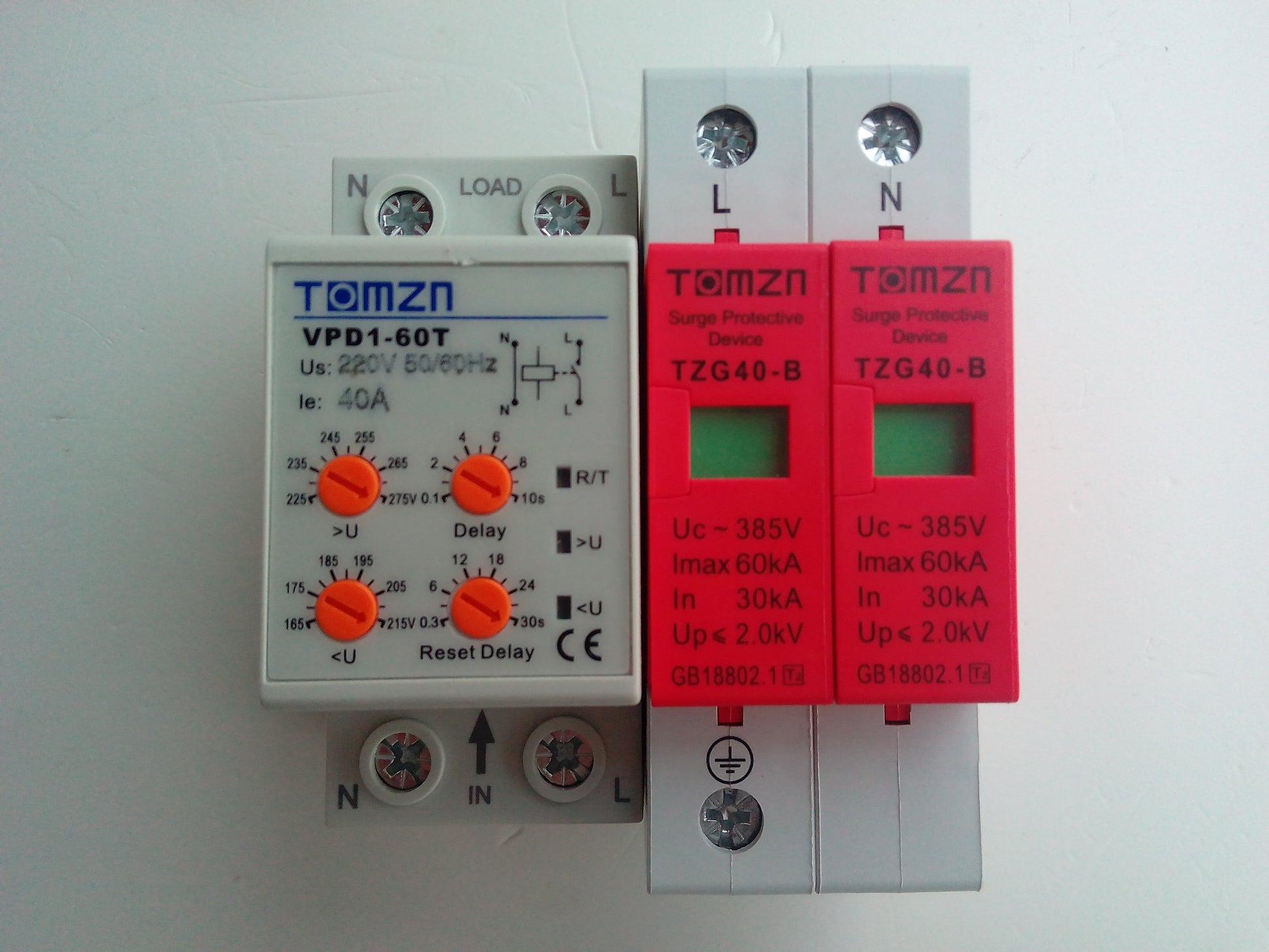0781 *(0746-0726) NUEVO. Limitador doble, protector sobre tensiones permanentes ajustable + Transitorias Combo. Permanentes: ajustable hasta 40A/8,8kva. Auto rearmable y ajustable en rangos de sobre tensión y baja tensión. AC230v/2p. Transitorios SPD: con descarga a tierra, 230/420vac Uc: 385v~ac. Imax: 60ka. In: 30ka. Up: 2kv. Tiempo de respuesta: -25ns. Indicador estado. Doméstico e industrial. Protección atmosférica y sobre voltaje de red.