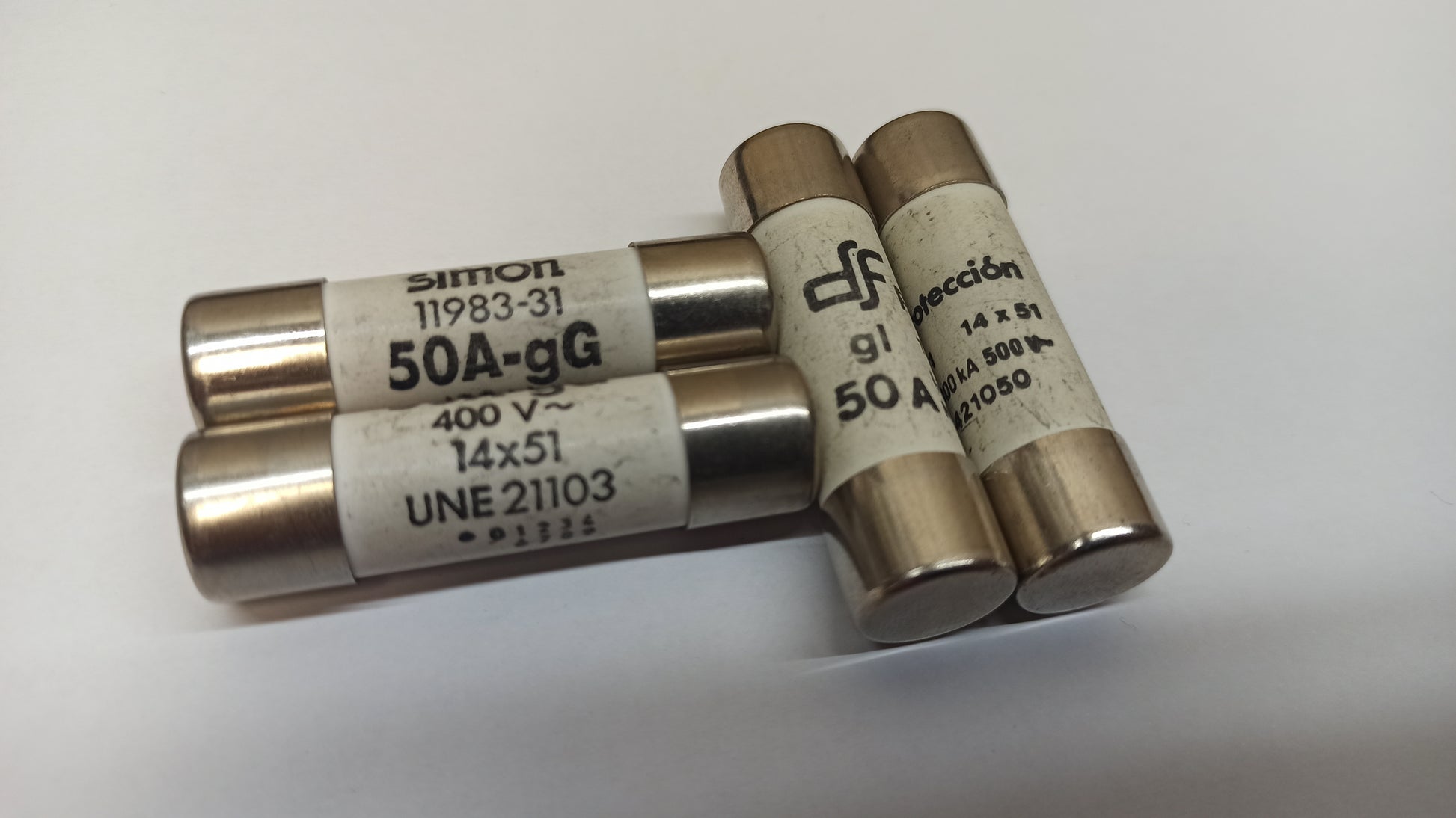 NUEVO. Fusibles cilíndricos de 50A GL/gG Medida 14x51 100ka 500vac. Para base porta fusible seccionable. También disponible bases portafusibles.