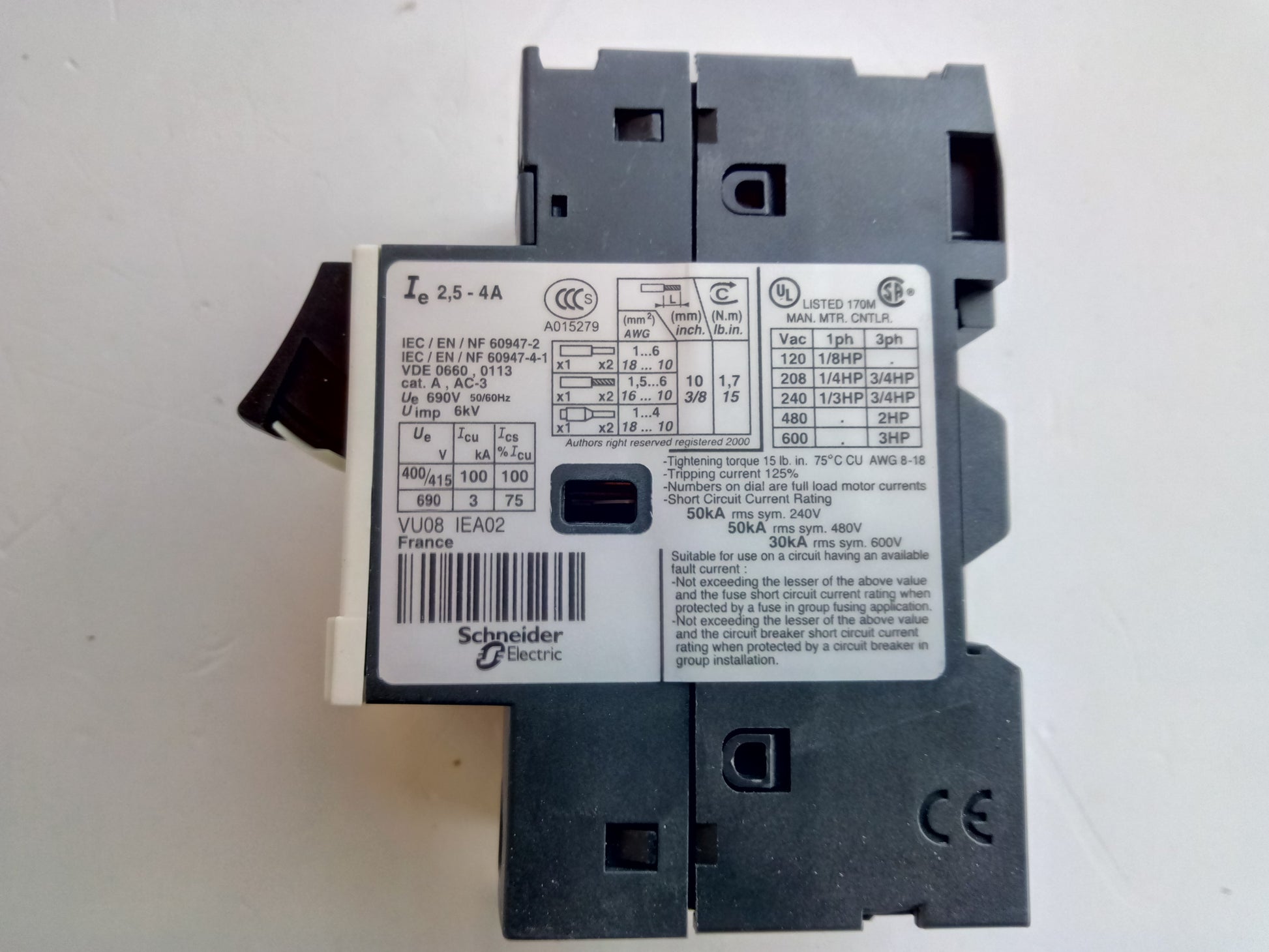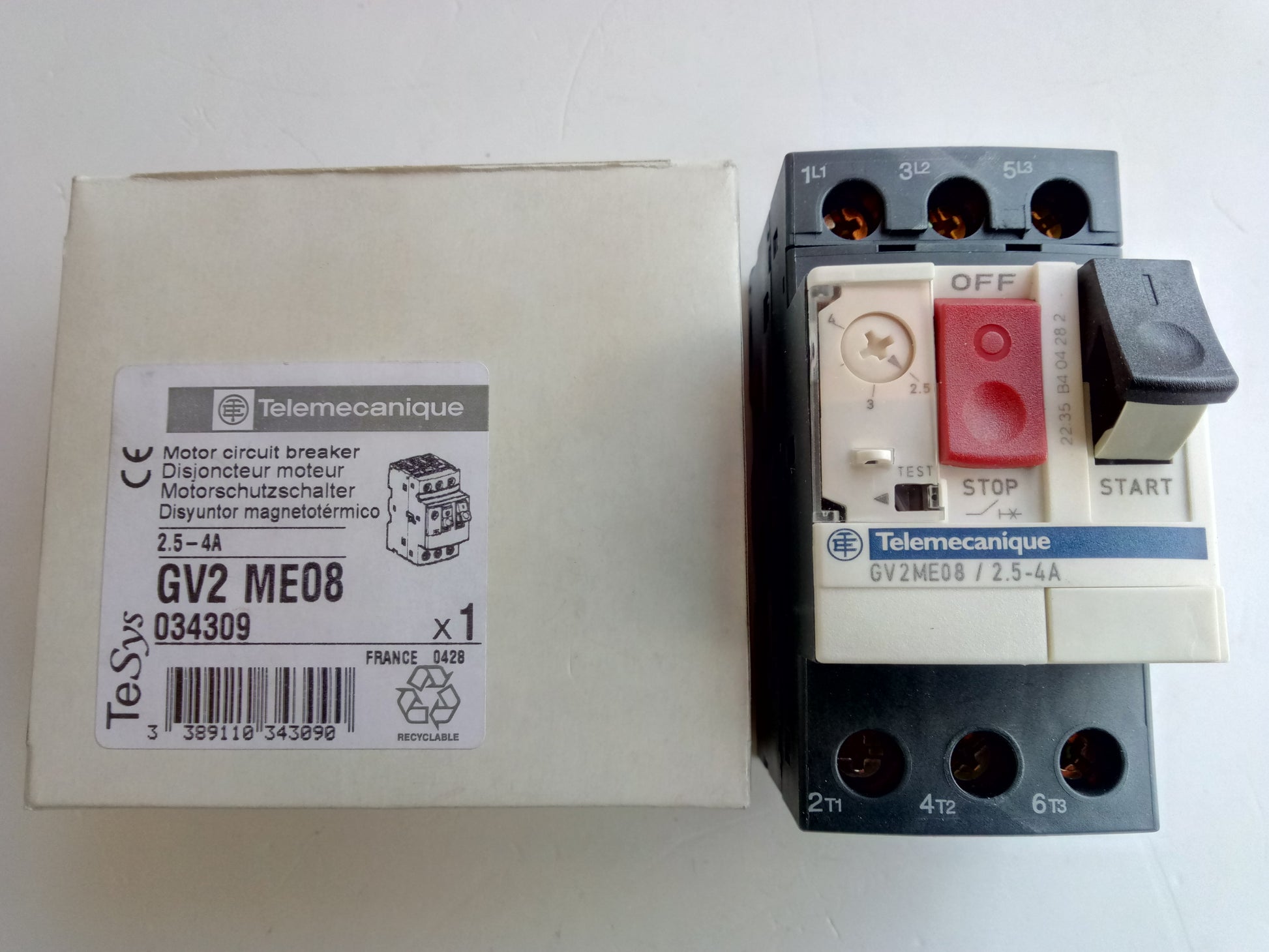 NUEVO. Interruptor disyuntor Guardamotor Telemecanique (Schneider Electric) GV2ME08 / 2.5 - 4A. 034309 tesys. Modelo actual.
