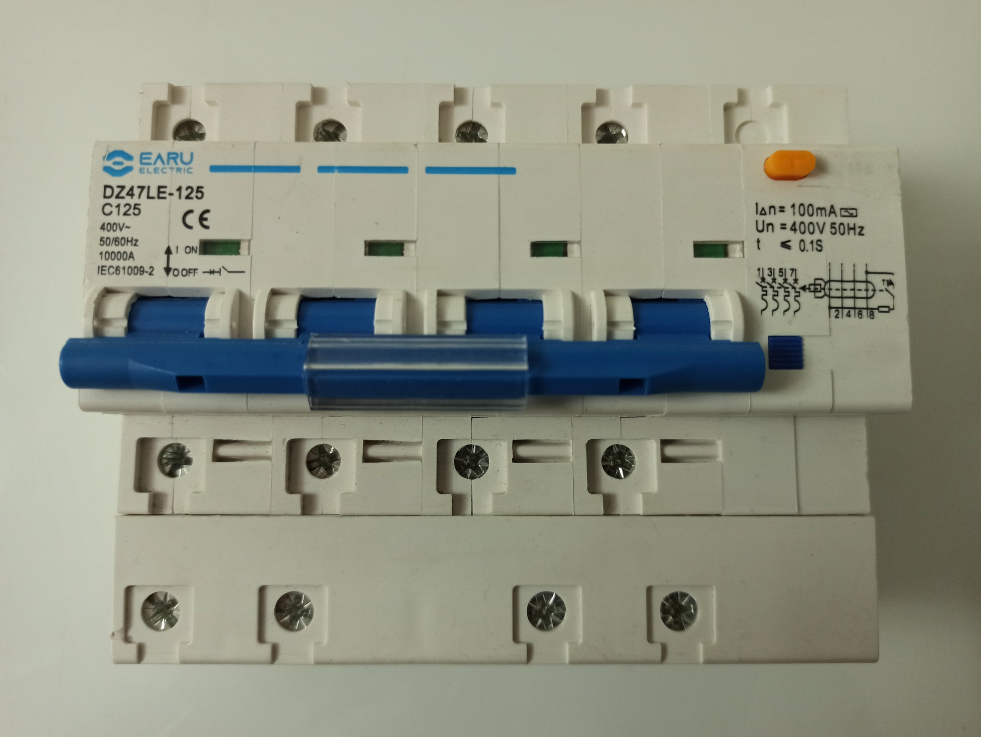 NUEVO Bloque vigi. Combo interruptor automático iga magneto térmico C125A/4polos trifásico + interruptor diferencial 0.100a/100ma. 10ka 230/400vac 50/60hz. Módulo ancho. Protección contra sobrecargas y cortocircuitos + fuga a tierra. Domestico e industrial. Earu.