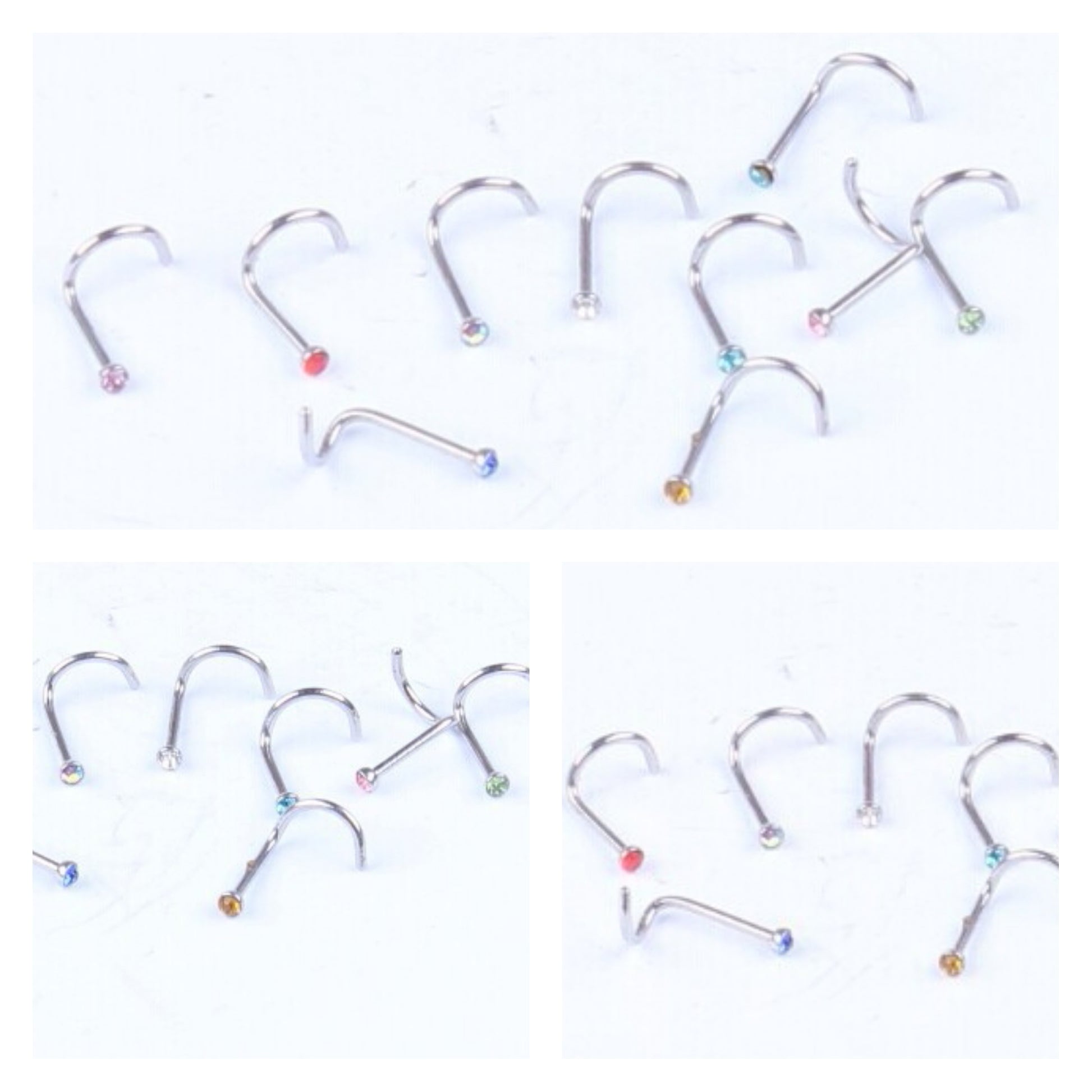 Nuevo. Lote de 30 piercing nariz curvados. Brillante multicolor variado de colores. Oferta contiene 20 pendientes redondos + 10 estrella.