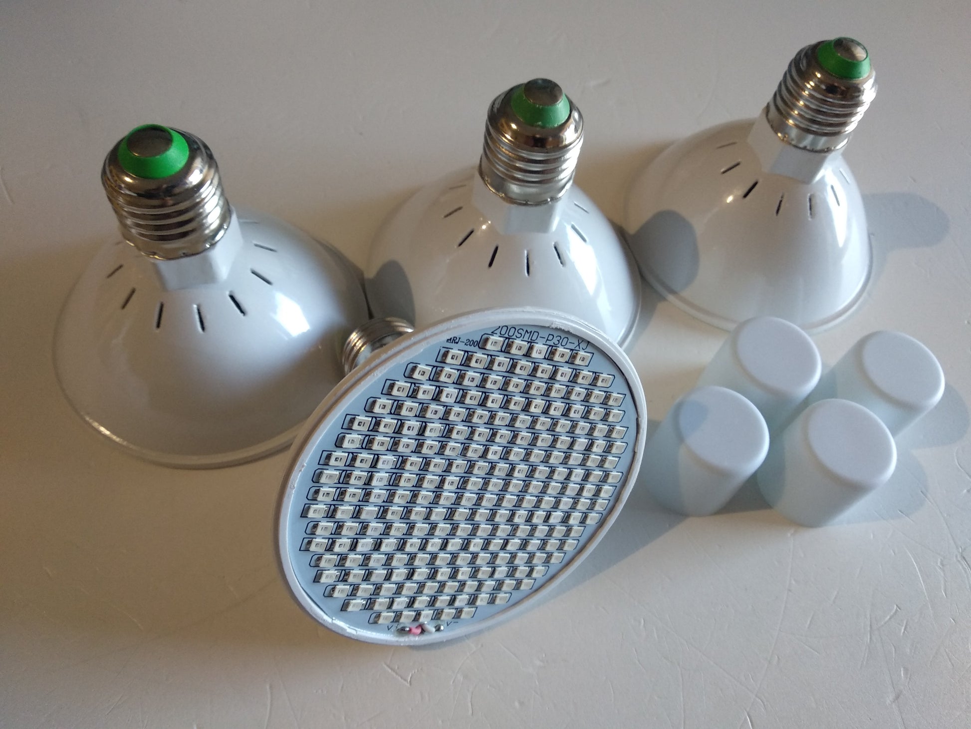 NUEVO. Lote de 4 lámparas led para cultivo de crecimiento y floración. Potencia 4 x 20w: 80w. Directo 230v casquillo e-27. 200 leds x bombilla/800 led total. SMD-P30-XJ. No desprenden apenas calor. Muy bajo consumo y muy grandes resultados y rendimiento. Vida útil 50.000 horas.