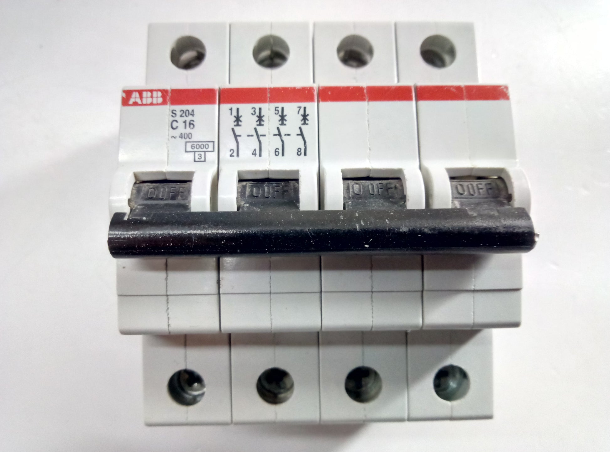 Buen estado, comprobado. Interruptor Magneto térmico IGA Trifasico + neutro ABB. C16A/4 polos/220-400Vac. Protección domestica e industrial.