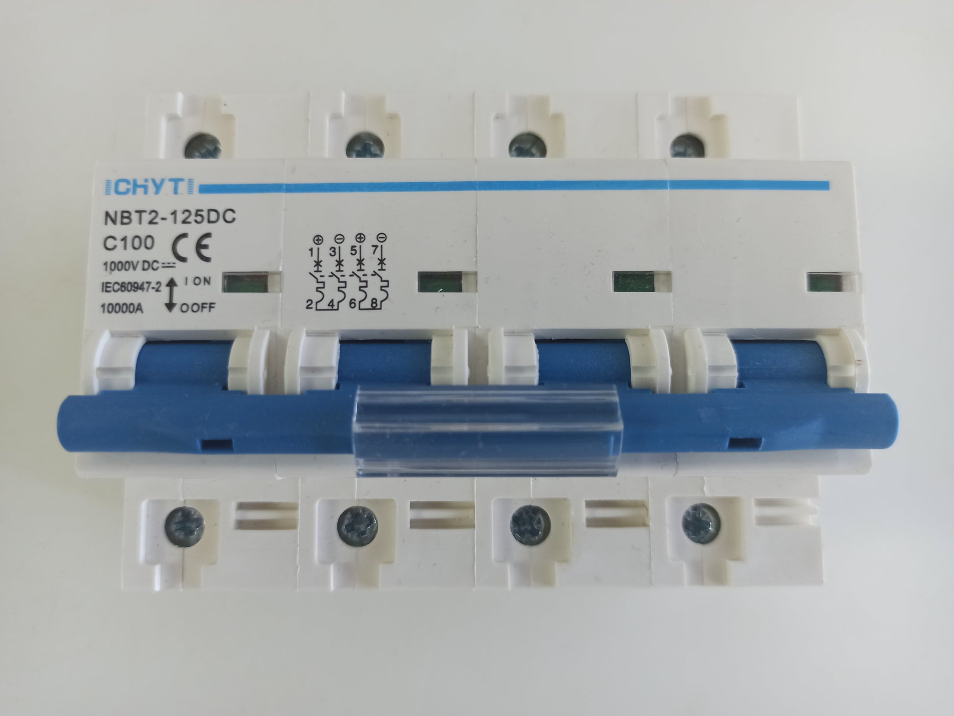 NUEVO Magnetotermico interruptor general C100A DC corriente continua +/-/+/- de 2 líneas 2 circuitos 4 polos. 1000v/10ka. Cuerpo grande y conexiones gruesas. Para instalaciones de energía solar, fotovoltaica, baterías o sai. Protección para cortes, sobreconsumo o cortocircuito. Placas solares.