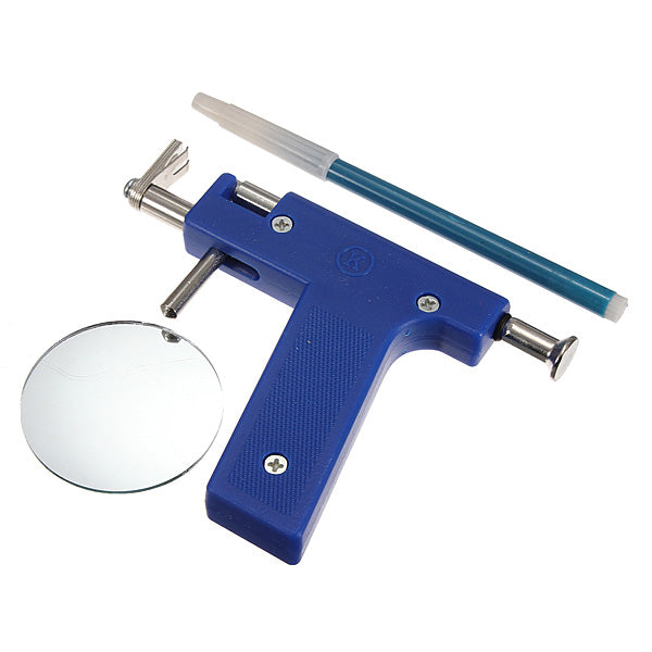 NUEVO. Estuche pistola perforadora de oído oreja con 70 pendientes aprox de acero anti alérgico esterilizado nuevo. Espejo y marcador. Material profesional de primera calidad. Piercing.