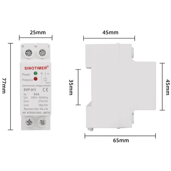 Nuevo. Limitador protector sobretensiones permanentes Autorearmable monofásico. Hasta 63a/2p - 15kva. Estrecho. Auto rearmable. Rangos de sobre tensión y baja tensión. AC230v 50/60hz. 2 polos. Uvo: >275+-10v. Uve: <160+-10v. Autorearme: 30segundos. Disparo: 1segundo. Led indicativo estado. El dispositivo re-alimenta después de 1 minuto, cuando la energía alta o baja vuelve a la normalidad.