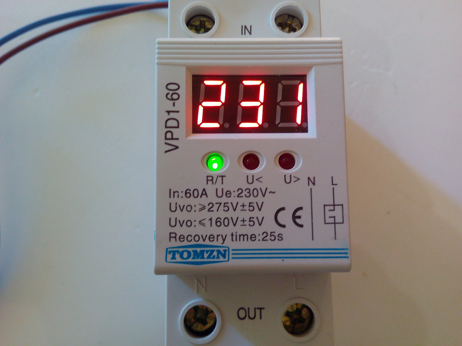 NUEVO. Limitador protector sobretensiones permanentes Nuevo. Hasta 60A/14,49kva. Auto rearmable. Con display pantalla lectura voltaje instantánea. Proteccion en rangos de sobre tensión y baja tensión. AC230v 50/60Hz. 2 polos. Uvo: >275+-5V. Uve: <160+-5V. Autorearme: 60segundos. Disparo: 1segundo. Led indicativo estado. El dispositivo re-alimenta después de 25s automaticamente.