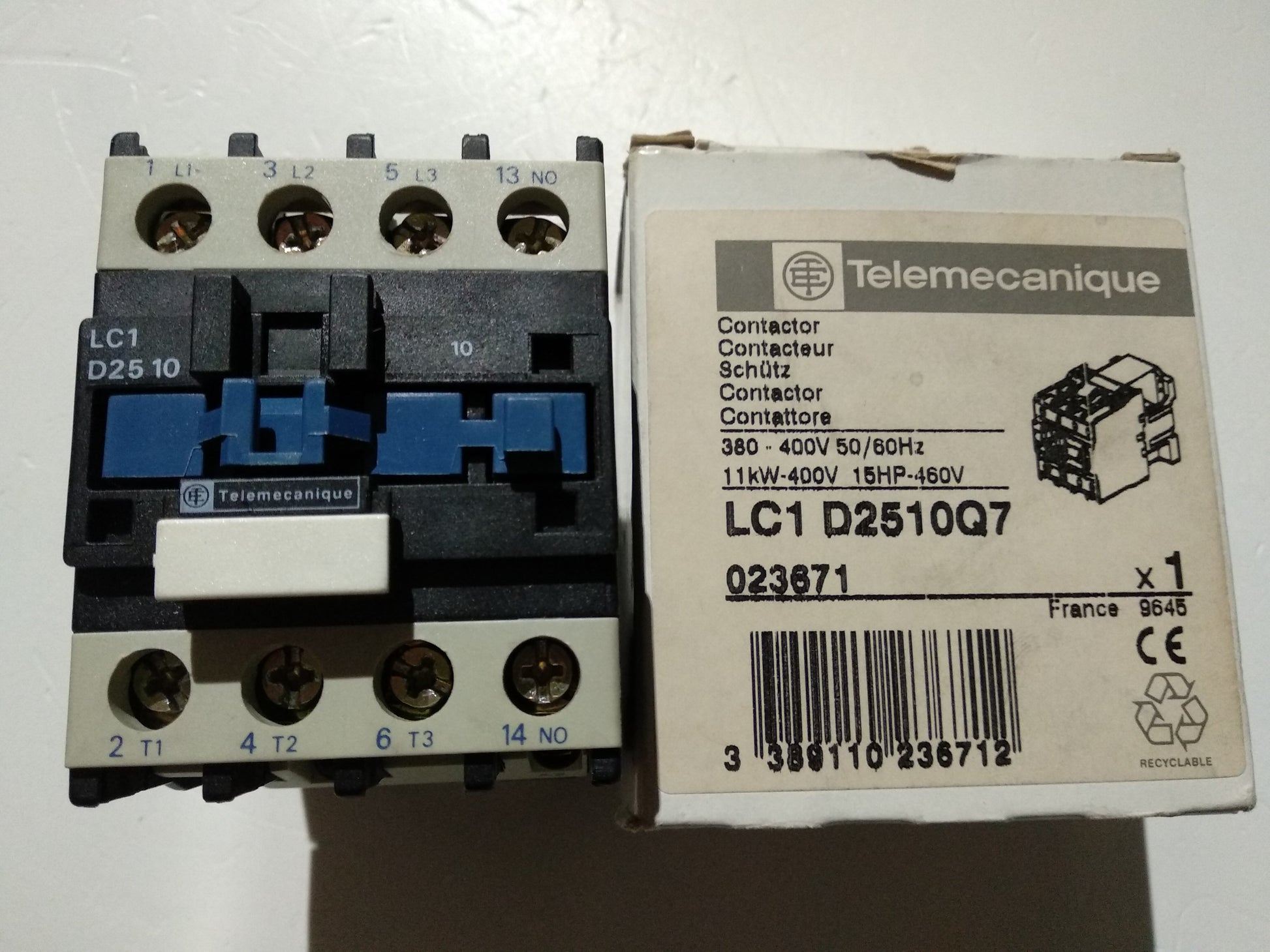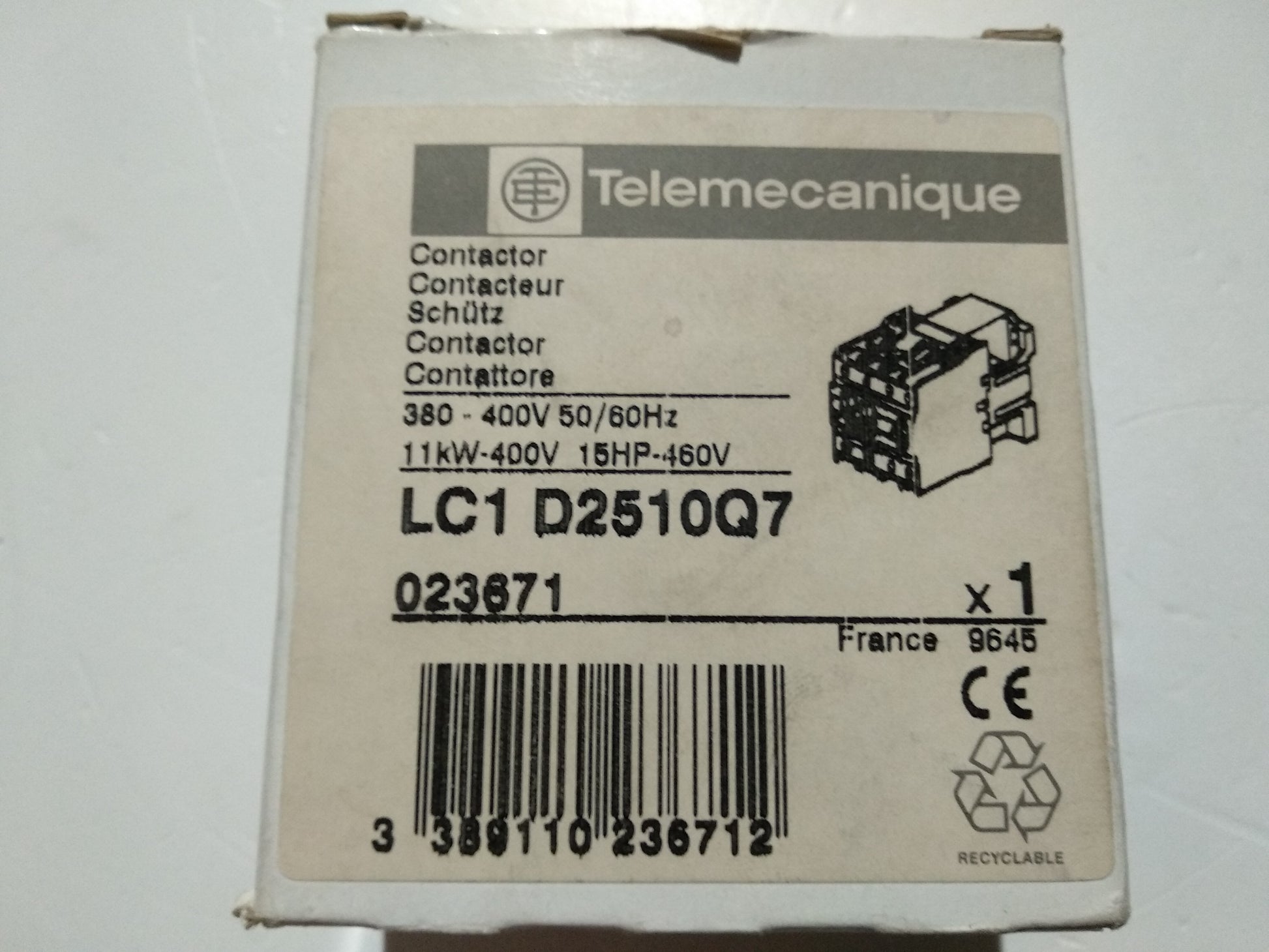 NUEVO. Contactor Telemecanique LC1 D2510-Q7 40A Trifásico 023671. Bobina accionamiento Q7 380/400Vac 50/60hz alterna. Modulo ancho, gran tamaño 1000v 11kv. 220/380/415/690/750V. Un contacto auxiliar abierto 13-14 NO.