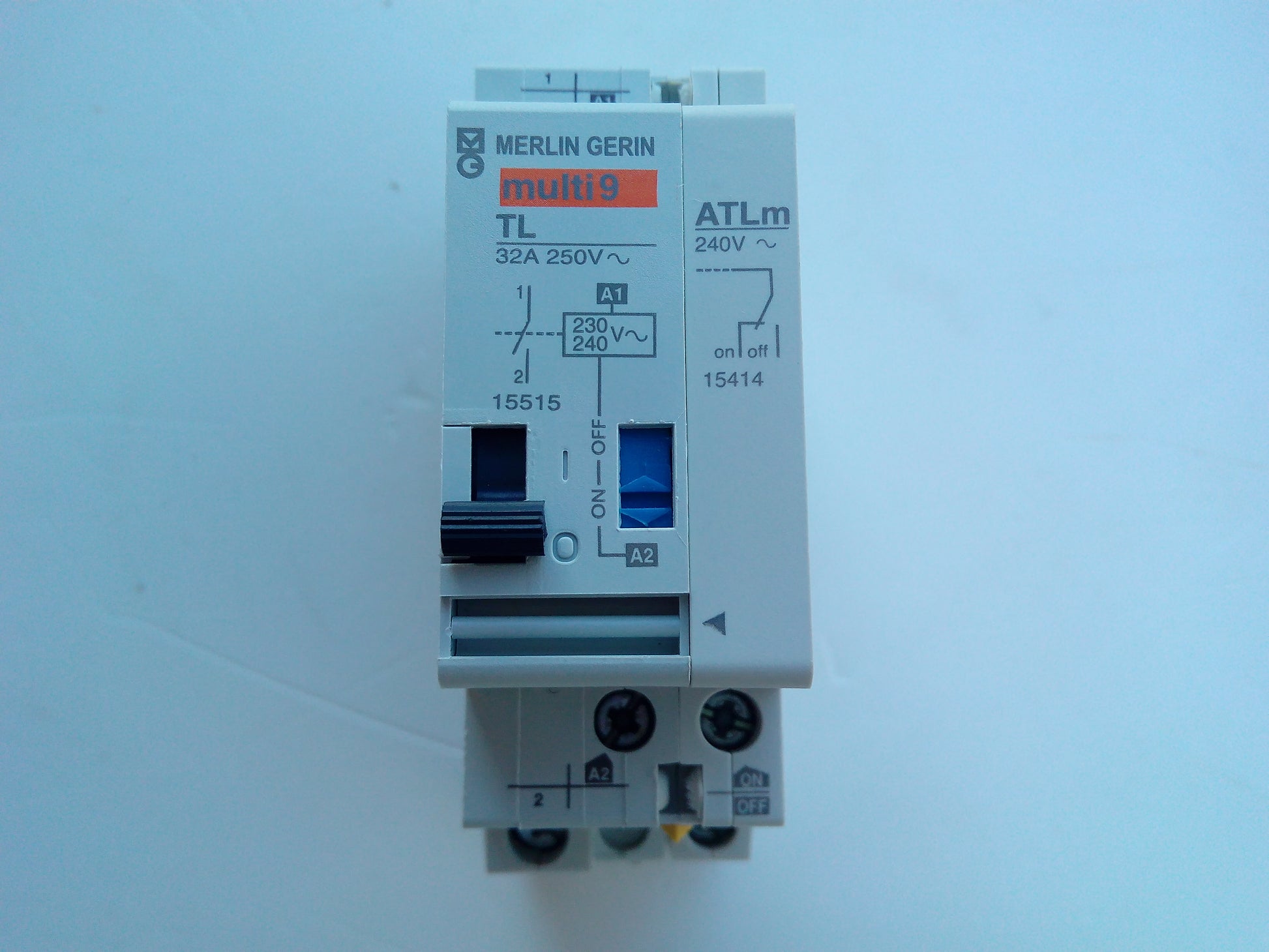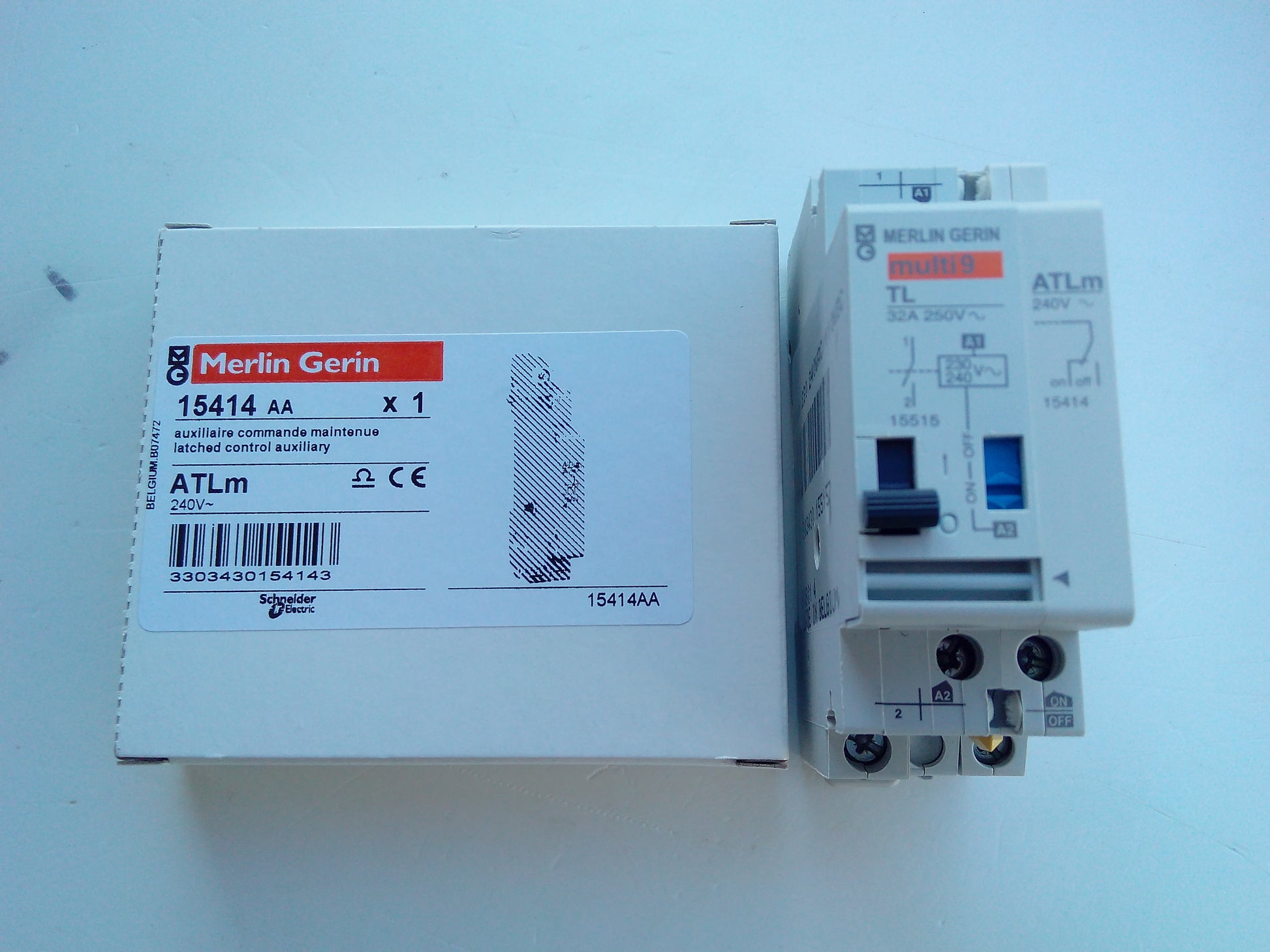 Nuevo. Telerruptor TL Merlin Gerin multi 9 Schneider. 32A 1p 230/240vac-110vdc 15515. Relé de impulso + modulo auxiliar ATLm 15414 AA.